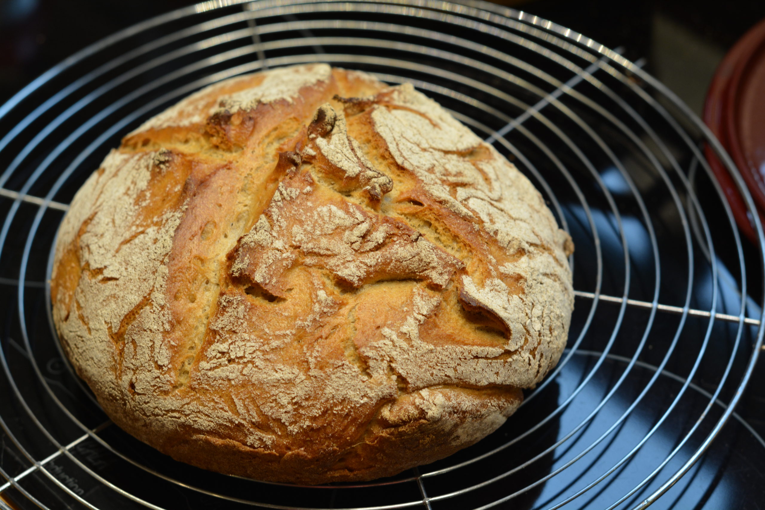 - Das Brot 45 Min. backen. Dann das Brot aus dem Ofen holen und auf ein Gitter zum auskühlen legen.